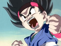 Superando vários perigos e bestas vão avançando, mas ao cruzar uma ponte, Pack cai ao vazio e Goku Jr. sente-se culpado uma vez mais de não ter sido o suficientemente valente e forte para defender a seu amigo. Pouco depois encontra-se com um pequeno urso ao que ajuda, e a mãe agradecida, decide lhe acompanhar e lhe proteger o resto do caminho. Mas não demoram muito em topar com um novo perigo...uma besta inteligente, que é realmente poderosa e ameaça com lhes matar a todos. Mamãe ouso ataca, mas não é rival para o monstro. O pequeno Goku Jr., dúvida durante alguns momentos, mas finalmente enfurece-se para valer e decide fazer frente ao monstro. Cheio de ira transforma-se em Super Saiya-jin e vence facilmente.